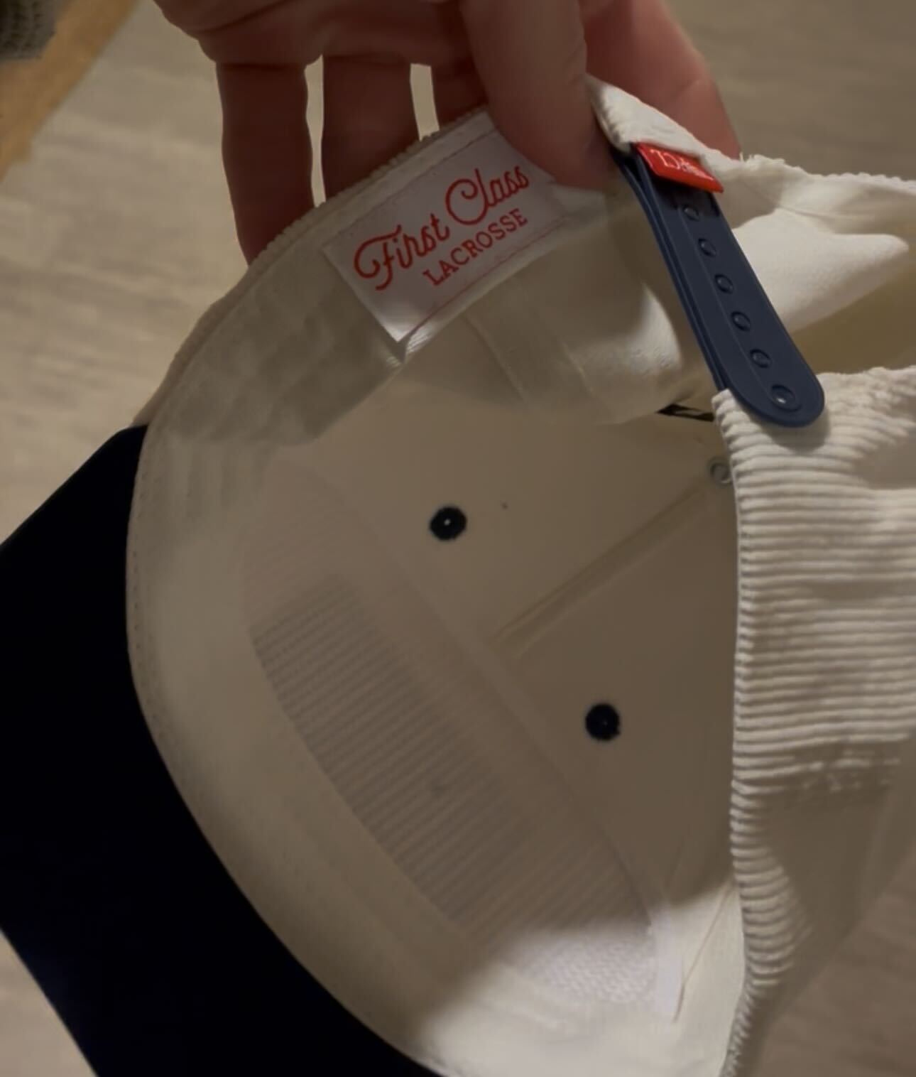 Jammer custom White / Navy Brim corduroy hat. Custom FCL Wings logo.